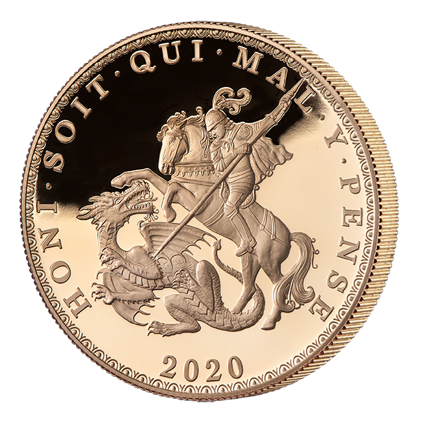The reverse shows the iconic St. George and the Dragon by Benedetto Pistrucci. This design has been used since 1817 on the reverse of most dates of Sovereigns, with a few exceptions. The Royal Mint have digitally remastered them using the original tooling.