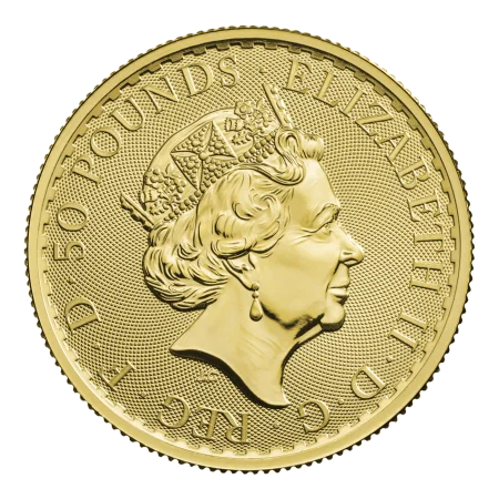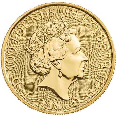 The obverse of the coin bears a portrait of Her Majesty Queen Elizabeth II, with the weight and fineness, year-date, and monetary denomination also detailed.